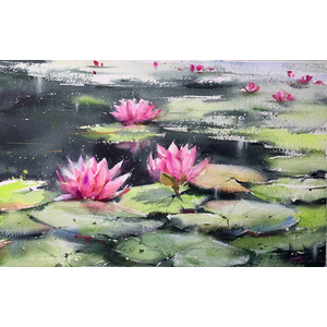 «Водные красавицы» Картина с цветами художника Галины Гомзиной. Название картины: «Водные красавицы». Размер картины 30х49. Картина написана акварелью на бумаге.