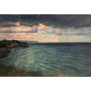 «Тучи над Кручей в Геленджике» Морской пейзаж в картине художника Татьяны Южной. Название картины: «Тучи над Кручей в Геленджике». Размер картины 50х70. Картина написана художником маслом на холсте.