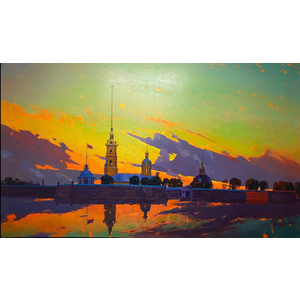 «Вечер на Неве. Петропавловская крепость» Картина пейзаж художника Сергея Данчева. Название картины: «Вечер на Неве. Петропавловская крепость». Размер картины 180х305. Картина художника написана маслом на холсте.