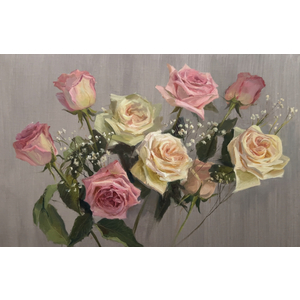 «Розы на сером» Цветы розы в картине художника Татьяны Южной. Название картины: «Розы на сером». Размер картины 35х45. Картина художником написана маслом на холсте.