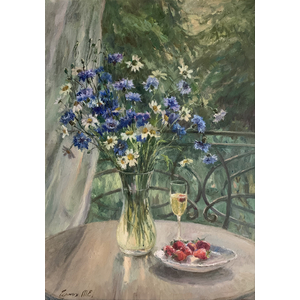 Картина художника Татьяны Черных «Ромашки с шампанским», представленная в картинной галерее живописи.