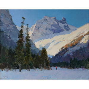 Картина художника Сергея Кулешова "Утро в Домбае", представленная в картинной галерее.