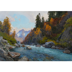 Картина художника Сергея Кулешова "Вечер в ущелье".