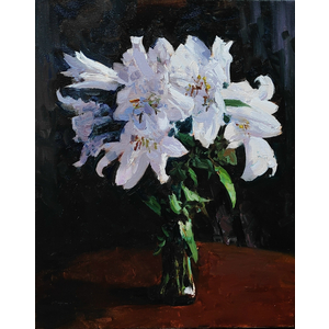«Белые лилии» Цветы лилии в картине художника Александра Бабича. Название картины: «Белые лилии». Размер картины 50х60. Картина с цветами написана художником маслом на холсте.